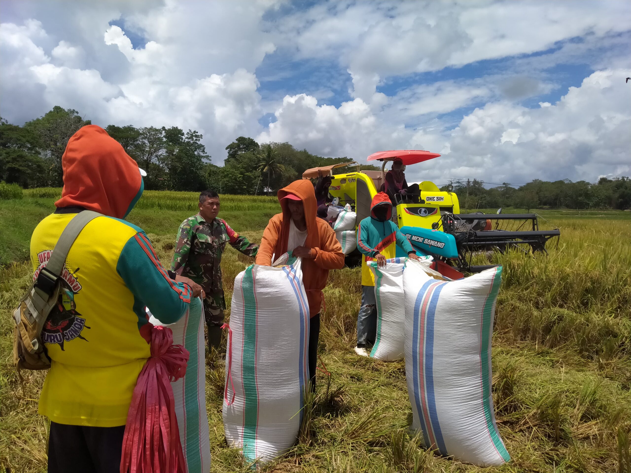 Babinsa Koramil 1406-05/Majauleng Dampingi Petani Panen Padi di Desa Tua
