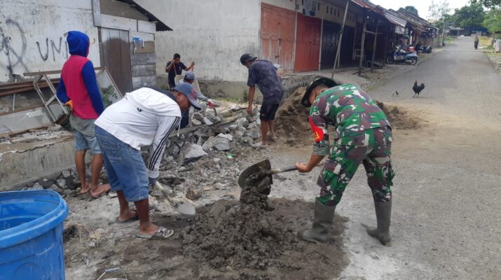 Wajo – Babinsa Koramil 1406-02/Tanasitolo, Praka Asrul, melaksanakan kegiatan gotong royong bersama warga dalam perbaikan parit (got) di Desa Nepo, Kecamatan Tanasitolo, Kabupaten Wajo, Jumat (5/12/2025).