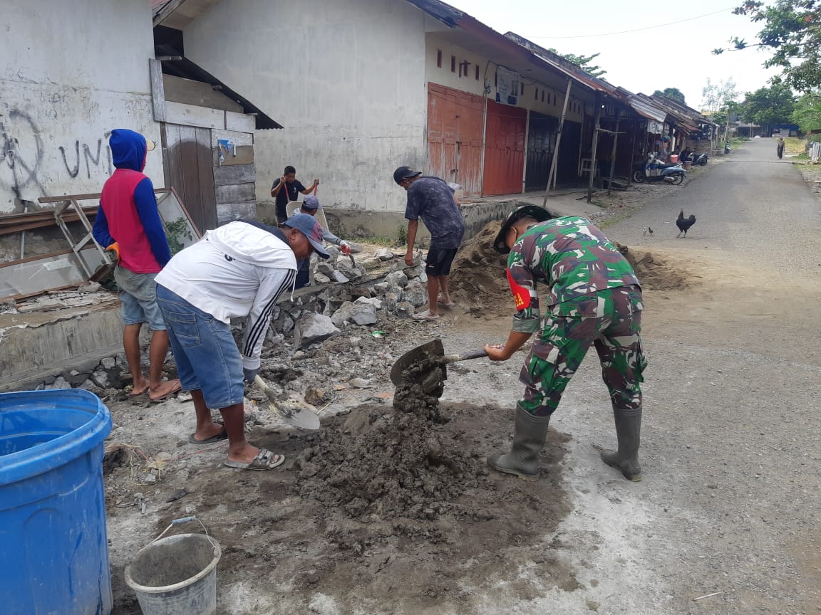 Babinsa Koramil 1406-02/Tanasitolo Ikut Gotong Royong Perbaikan Parit di Desa Nepo