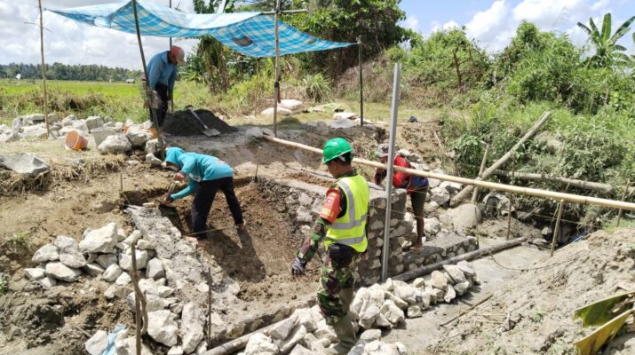 Wajo – Babinsa Koramil 1406-02/Tanasitolo, Serda Saharuddin, melaksanakan kegiatan karya bakti pembangunan pintu air irigasi di wilayah binaannya, Kelurahan Mappadaelo, Kecamatan Tanasitolo, Kabupaten Wajo, Kamis (11/12/2025).