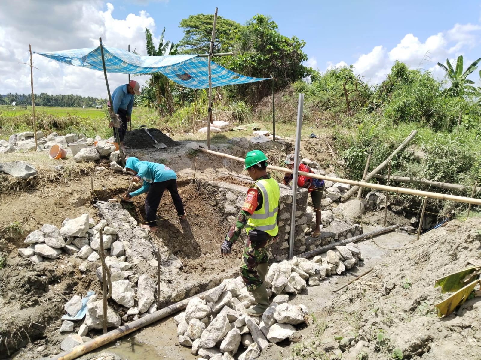 Wajo – Babinsa Koramil 1406-02/Tanasitolo, Serda Saharuddin, melaksanakan kegiatan karya bakti pembangunan pintu air irigasi di wilayah binaannya, Kelurahan Mappadaelo, Kecamatan Tanasitolo, Kabupaten Wajo, Kamis (11/12/2025).