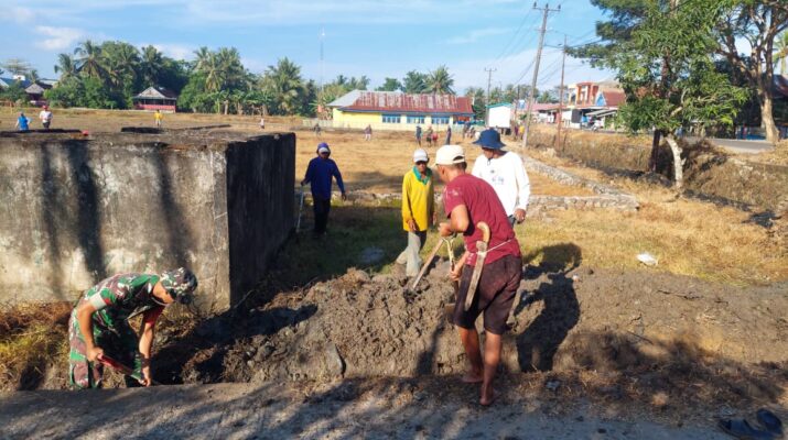 Babinsa Koramil 1406-02/Tanasitolo Laksanakan Karya Bakti Pembersihan Saluran Air