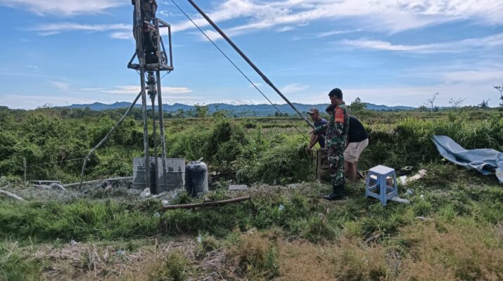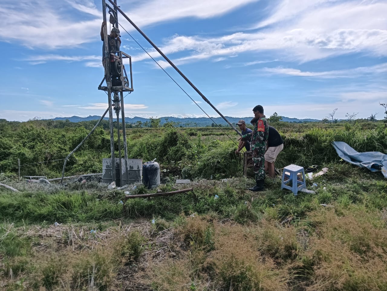 Kegiatan ini dilakukan untuk memastikan proses pengeboran berjalan aman dan sesuai kebutuhan masyarakat, khususnya dalam mendukung ketersediaan air bagi lahan persawahan. Dalam kesempatan tersebut, Babinsa juga berkoordinasi dengan warga terkait pemanfaatan hasil pengeboran.