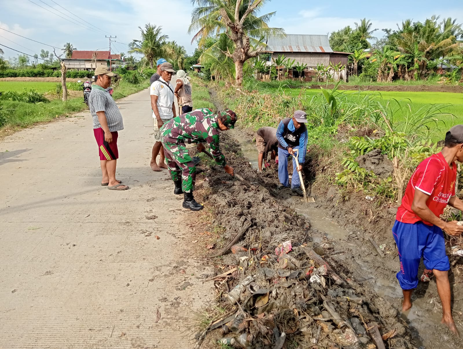 Serda Fadly menegaskan bahwa kerja bakti ini juga menjadi sarana mempererat kebersamaan antara TNI dan masyarakat. “Semangat gotong royong perlu terus dijaga agar setiap permasalahan di desa bisa diselesaikan bersama,” ungkapnya.
