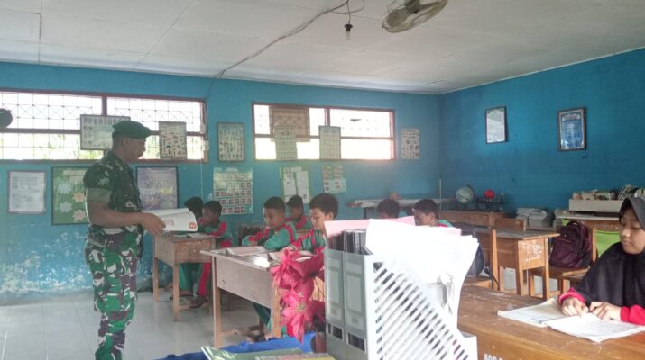 Wajo – Dalam rangka menanamkan rasa cinta tanah air sejak dini, Babinsa Koramil 1406-06/Pammana, Serda Fadly, memberikan pengetahuan dasar tentang bela negara kepada siswa-siswi SDN 104 Sabbang, Desa Abbanuangnge, Kecamatan Pammana, Kabupaten Wajo, Sabtu (19/04/2025).