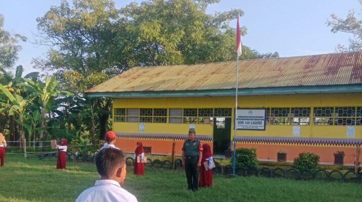 Wajo, 16 Juni 2025 – Babinsa Koramil 1406-06/Pammana, Sertu Baharuddin, bertindak sebagai pembina upacara pada pelaksanaan upacara bendera hari Senin di Lapangan SDN 102 Lagosi, Desa Lagosi, Kecamatan Pammana, Kabupaten Wajo. Kegiatan tersebut dilaksanakan dalam rangka membina dan menanamkan semangat nasionalisme serta wawasan kebangsaan kepada generasi muda sejak dini.