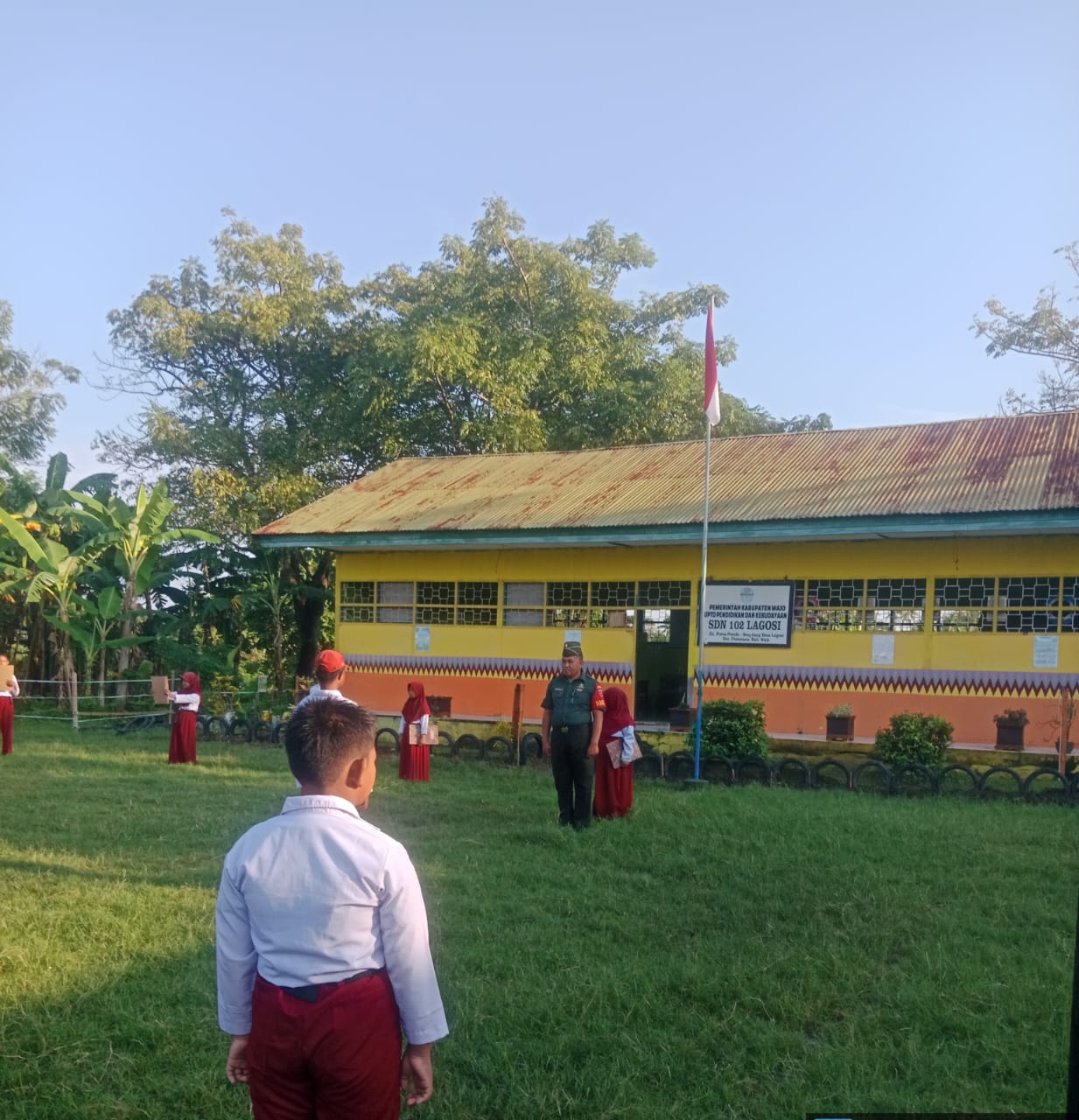 Turut hadir dalam kegiatan ini Kepala Sekolah SDN 102 Lagosi, Rukmini, S.Pd., beserta seluruh dewan guru dan staf. Pihak sekolah menyampaikan apresiasi atas kehadiran Babinsa yang telah memberikan motivasi positif kepada para siswa. Upacara berlangsung khidmat dan penuh antusiasme dari seluruh peserta didik.
