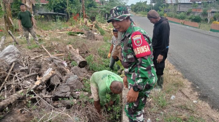 Babinsa Koramil 1406-06/Pammana Laksanakan Karya Bakti Pembersihan Parit Selokan