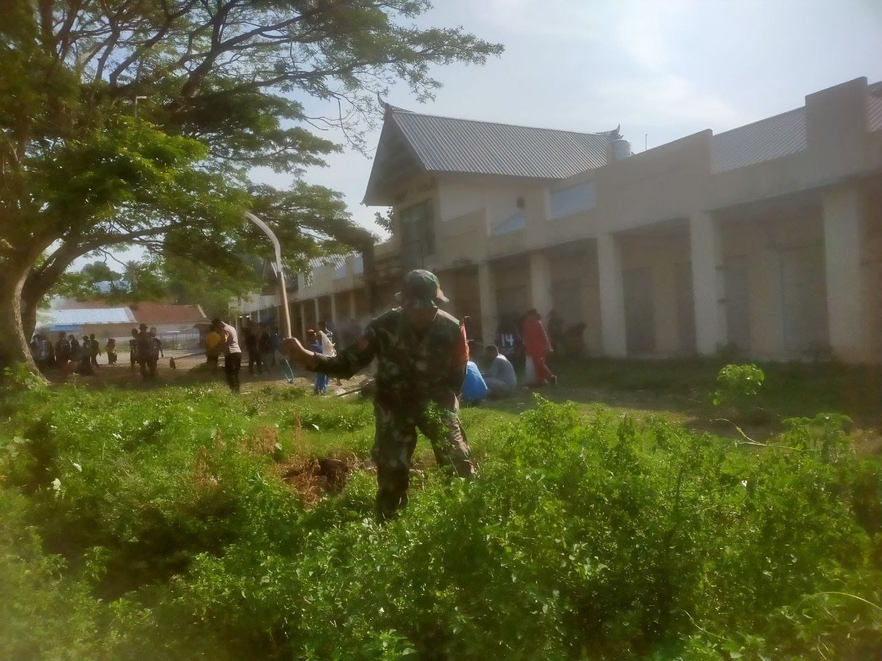 Wajo — Babinsa Koramil 1406-07/Takkalalla Kopka Guna melaksanakan kegiatan karya bakti pembersihan pasar bersama warga di Dusun Pasir Putih, Desa Pasir Putih, Kecamatan Bola, Kabupaten Wajo, Rabu (3/12/2025).