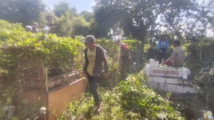 Wajo – Babinsa Koramil 1406-07/Takkalalla, Serka Arifuddin, bersama warga Dusun Lamakkojo, Desa Parigi, Kecamatan Takkalalla, Kabupaten Wajo, melaksanakan kerja bakti membersihkan Tempat Pemakaman Umum (TPU) pada Rabu (26/02/2025). Kegiatan ini bertujuan menjaga kebersihan dan kerapian area pemakaman sebagai bentuk kepedulian terhadap lingkungan.