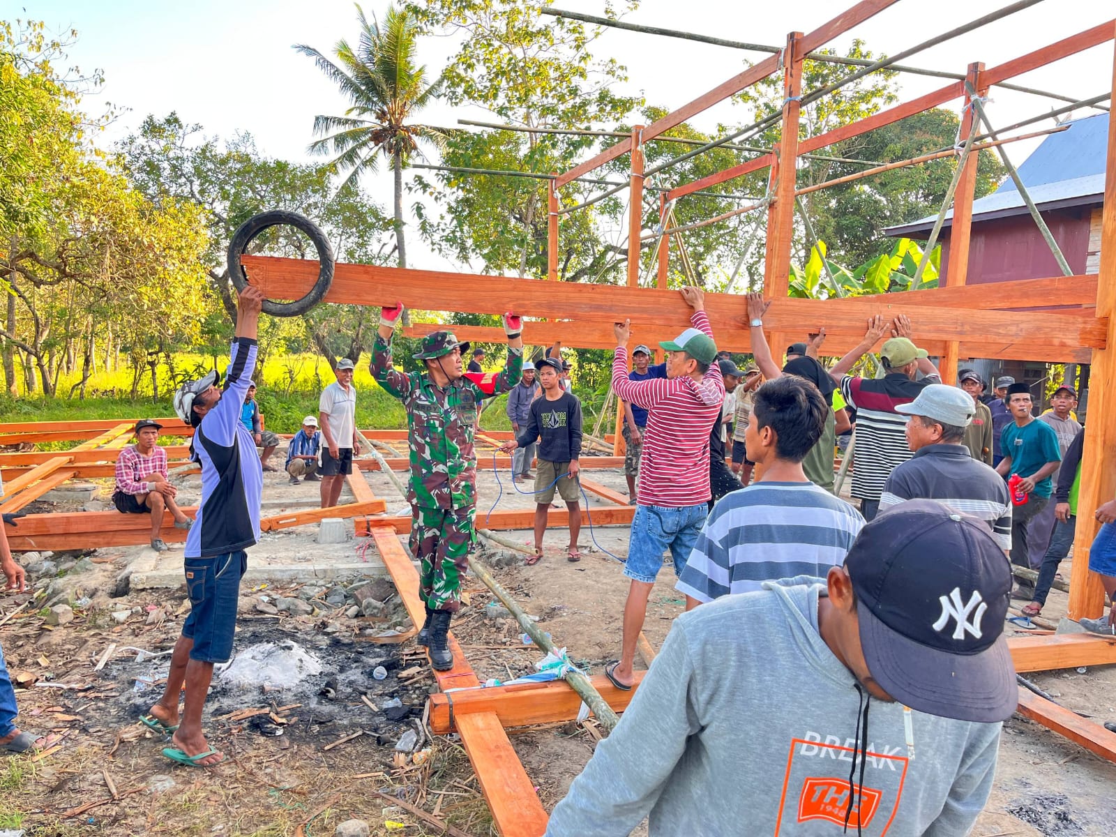 Babinsa Koramil 1406-07/Takkalalla Gotong Royong Dirikan Rumah Panggung Bersama Warga