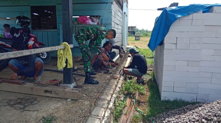 Dalam kegiatan tersebut, Kopda Jusman tidak hanya memonitor situasi dan kondisi wilayah, tetapi juga turun langsung membantu proses pembangunan pondasi rumah warga. Hal ini dilakukan untuk mempererat hubungan kemasyarakatan serta menunjukkan komitmen Babinsa dalam memberikan dukungan nyata kepada masyarakat.