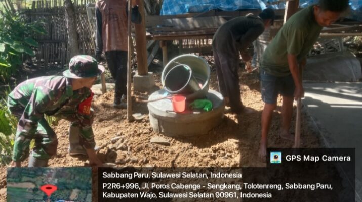 Babinsa Koramil 1406-08/Sabbangparu Bantu Warga Ratakan Timbunan Rumah di Kelurahan Talotenreng