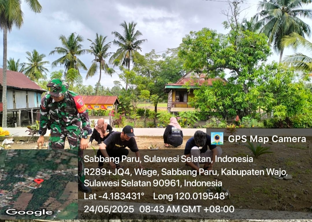 Wajo – Sebagai bentuk kepedulian terhadap kebersihan dan keindahan lingkungan, Babinsa Koramil 1406-08/Sabbangparu, Koptu Bakri, bersama warga melaksanakan kerja bakti membersihkan Taman Segitiga yang terletak di Desa Wage, Kecamatan Sabbangparu, Kabupaten Wajo, pada Sabtu (24/05/2025).