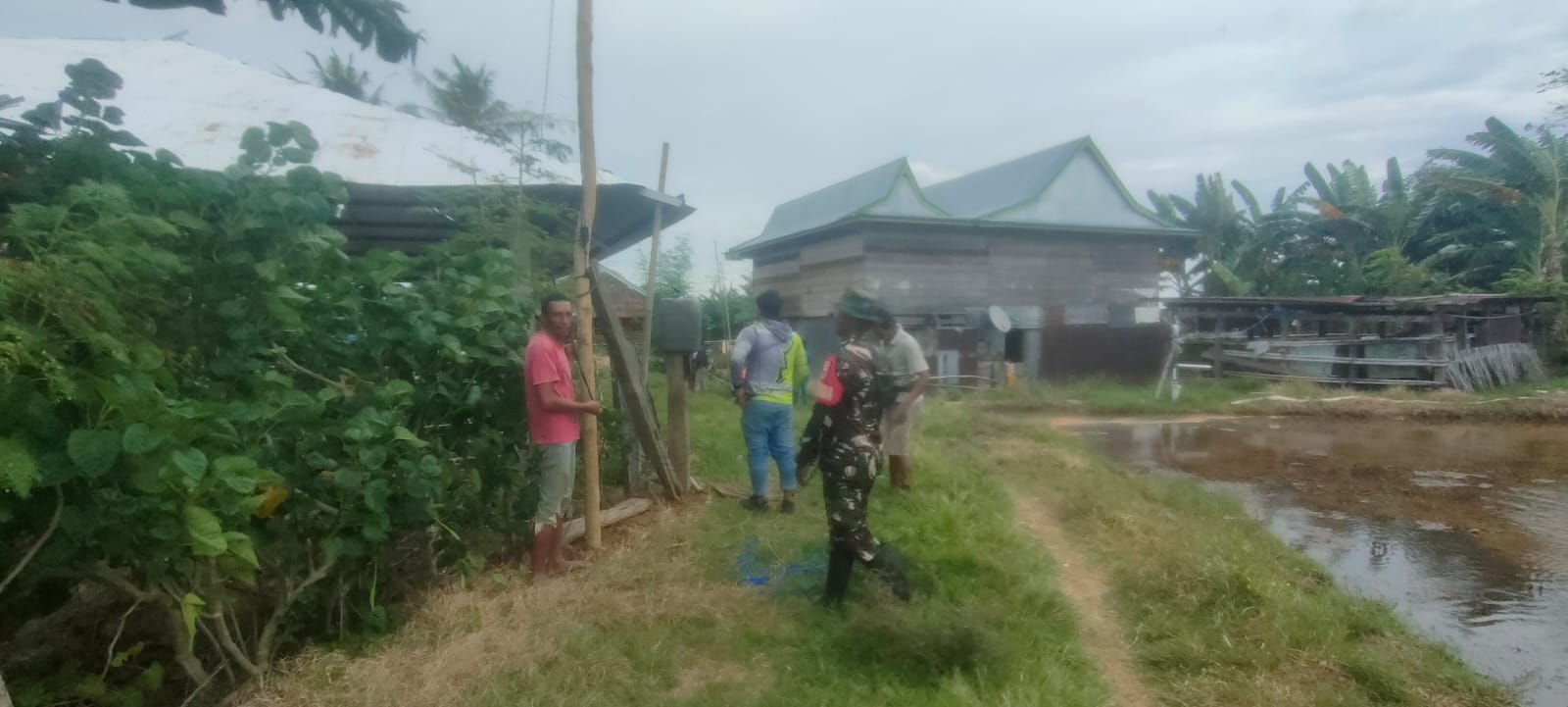 Babinsa Koramil 1406-09/Sajoanging, Koptu Yusran, melaksanakan kegiatan gotong royong bersama masyarakat dalam perbaikan tiang lampu penerangan jalan tani yang mengalami kerusakan di wilayah Kecamatan Sajoanging, Kabupaten Wajo, Sabtu (3/1/2026).