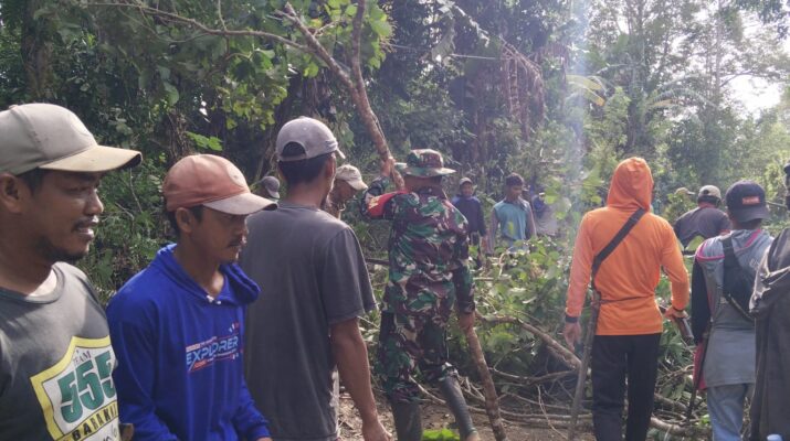 WAJO – Babinsa Koramil 1406-10/Pitumpanua, Serda Amiruddin, bersama Bhabinkamtibmas dan warga masyarakat melaksanakan kegiatan gotong royong membersihkan bahu jalan dari ranting-ranting pohon di Dusun Batangpare, Desa Abbanderangnge, Kecamatan Pitumpanua, Kabupaten Wajo, Minggu (27/04/2025).