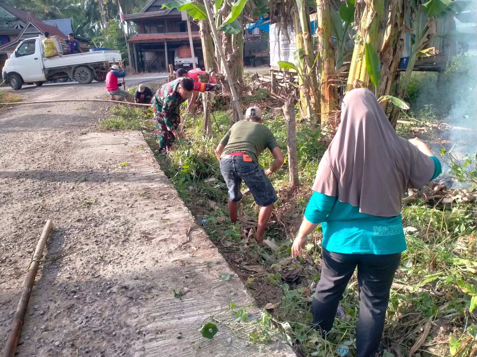 Adapun sasaran gotong royong meliputi pembersihan rumput liar, semak belukar, hingga selokan yang sudah tertutup sedimentasi pasir dan tanah. Dengan kerja sama yang baik antara Babinsa dan masyarakat, lingkungan sekitar kembali terlihat lebih bersih dan aliran air di selokan dapat berfungsi dengan lancar.