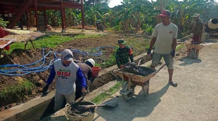Wajo — Kopda Jumardin, Babinsa Koramil 1406-09/Sajoangin, melaksanakan kegiatan gotong royong membantu pembuatan Mandi Cuci Kakus (MCK) bagi warga Desa Temmabarang, Kecamatan Penrang, Kabupaten