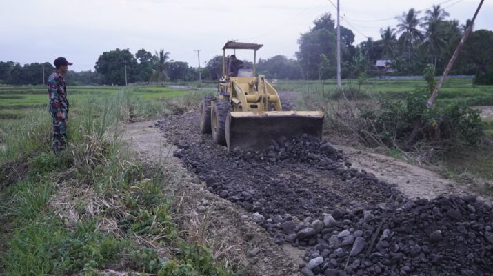 Kegiatan dimulai sejak pagi hari dan dipimpin langsung oleh Perwira Seksi Teritorial (Pasiter) Kodim 1406/Wajo, didampingi oleh sejumlah anggota dari Dinas Pekerjaan Umum (PU) Kabupaten Wajo. Kehadiran alat berat di lokasi turut mempercepat proses pemerataan material sirtu yang telah didistribusikan ke sepanjang titik pengerjaan.