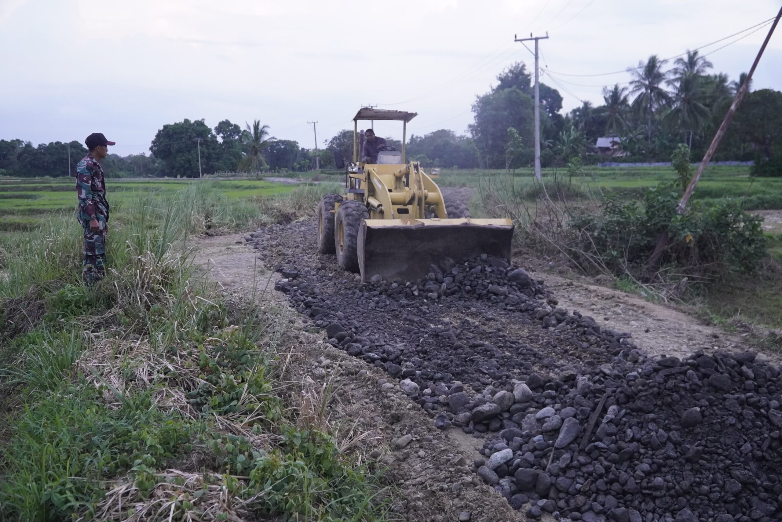 Kegiatan dimulai sejak pagi hari dan dipimpin langsung oleh Perwira Seksi Teritorial (Pasiter) Kodim 1406/Wajo, didampingi oleh sejumlah anggota dari Dinas Pekerjaan Umum (PU) Kabupaten Wajo. Kehadiran alat berat di lokasi turut mempercepat proses pemerataan material sirtu yang telah didistribusikan ke sepanjang titik pengerjaan.