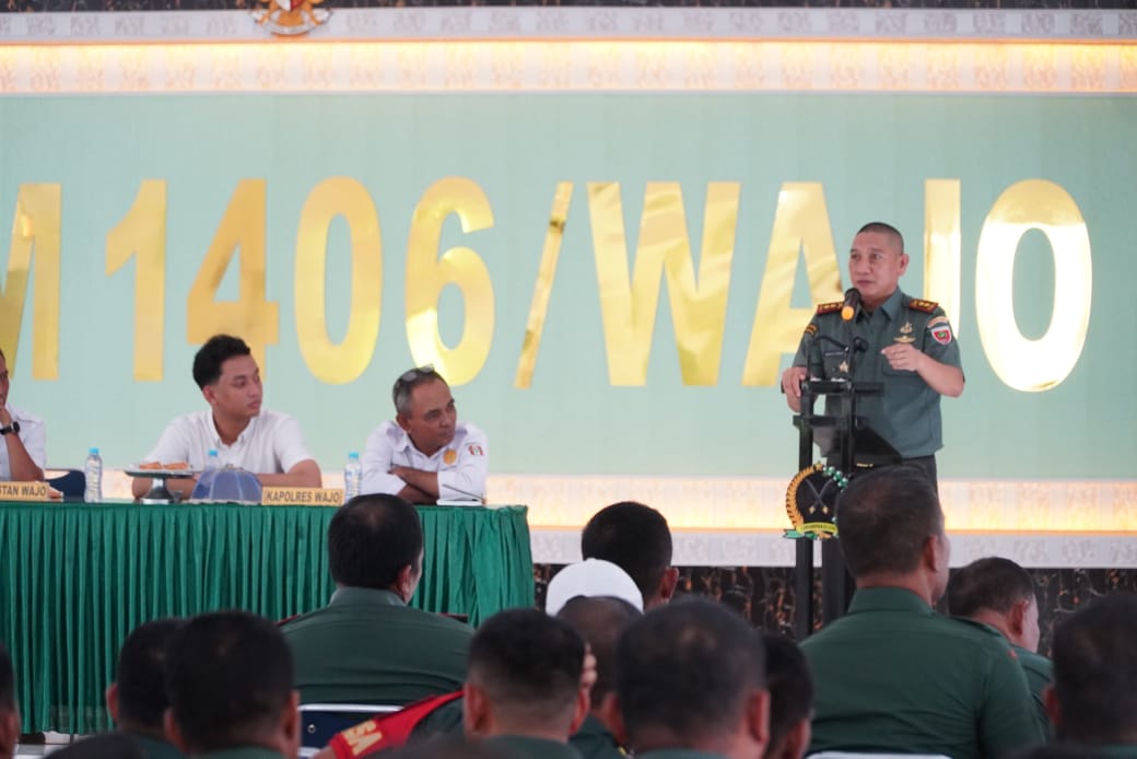 Dalam sambutannya, Dandim 1406/Wajo, Letkol Inf Wahyu Yunus, S. Ip, menyampaikan apresiasi kepada seluruh peserta yang hadir. Ia menegaskan bahwa Kodim 1406/Wajo siap mendukung penuh program penyerapan gabah (Sergab) dengan mengoptimalkan peran Koramil di setiap kecamatan serta Babinsa di setiap desa. “Mereka memiliki data yang akurat dan mengetahui kondisi di lapangan, sehingga dapat membantu dalam pelaksanaan program ini,” ujarnya.
