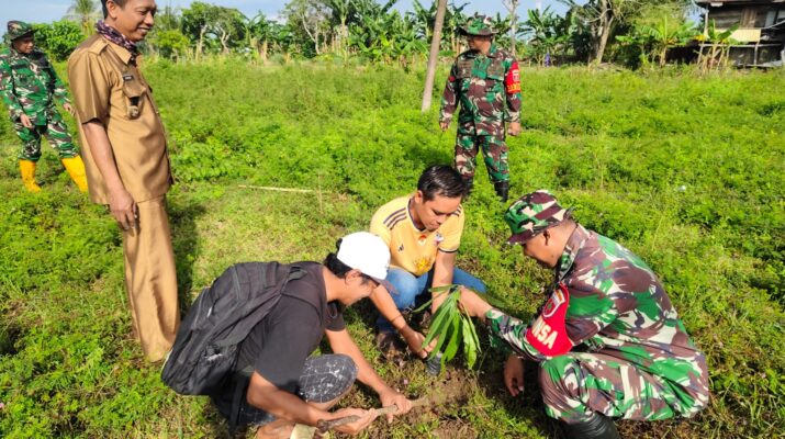 Wajo, 6 Agustus 2025 — Dalam upaya menjaga kelestarian lingkungan dan mendukung program penghijauan, Koramil 1406-02/Tanasitolo yang dipimpin oleh W.s. Danramil Kapten Cba Sudirman menggelar kegiatan Karya Bhakti penanaman pohon bersama aparat pemerintah setempat dan masyarakat di Kelurahan Baru Tancung, Kecamatan Tanasitolo, Kabupaten Wajo, Rabu (06/08/2025).