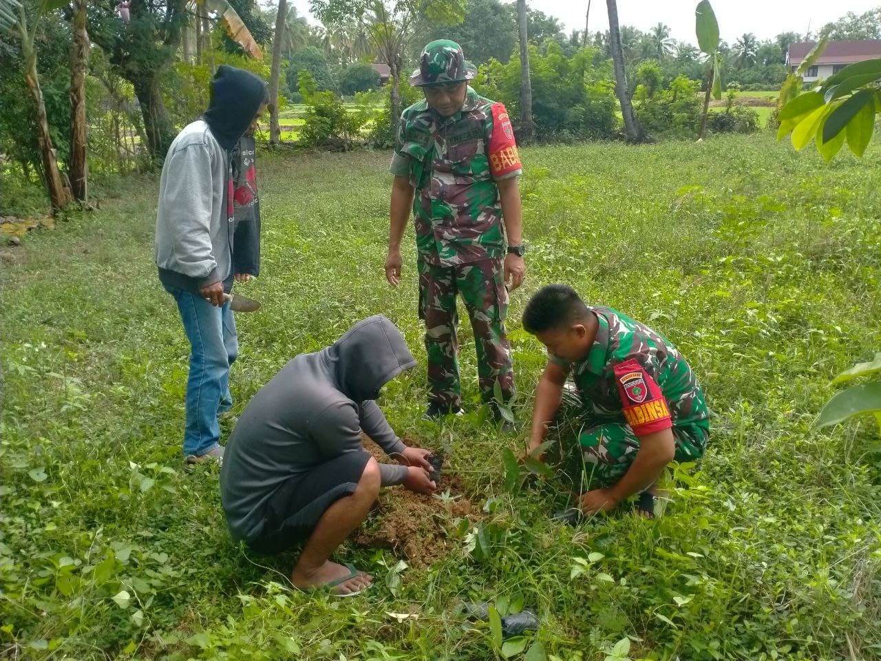 Koramil 1406-05/Majauleng yang dipimpin oleh Pelda Umar bersama masyarakat melaksanakan kegiatan Karya Bhakti berupa penanaman pohon durian dan pohon mangga di Kelurahan Paria, Kecamatan Majauleng, Kabupaten Wajo, pada Rabu (31/12/2025).