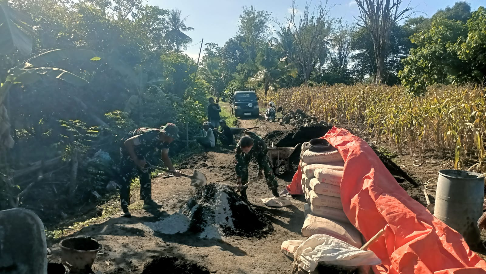 Wajo, Jumat (12/09/2025) – Koramil 1406-06/Pammana dipimpin Serma Irwandi bersama masyarakat Desa Kampiri, Kecamatan Pammana, melaksanakan Karya Bhakti pembersihan saluran air/got serta pengecoran talud jalan di sekitar jalan masuk Teppo Batu, Desa Kampiri, Kabupaten Wajo.
