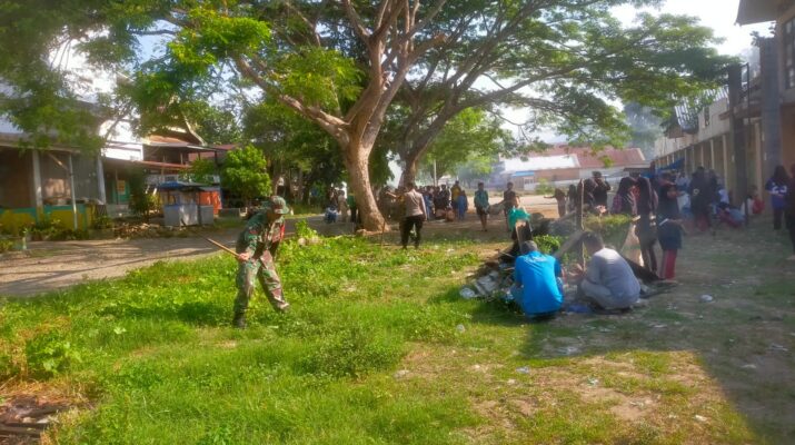 Wajo – Dalam upaya menjaga kebersihan lingkungan dan mencegah terjadinya banjir, Koramil 1406-07/Takkalalla yang dipimpin oleh Bintara Pembina Desa (Babinsa) Serma Asmar melaksanakan kegiatan Karya Bhakti bersama Pemerintah Kecamatan Bola dan siswa-siswi tingkat SMP serta SD se-Kecamatan Bola, Kabupaten Wajo. Kegiatan ini berlangsung pada Kamis (06/03/2025) dan menjadi agenda rutin yang dilaksanakan setiap bulan sekali.