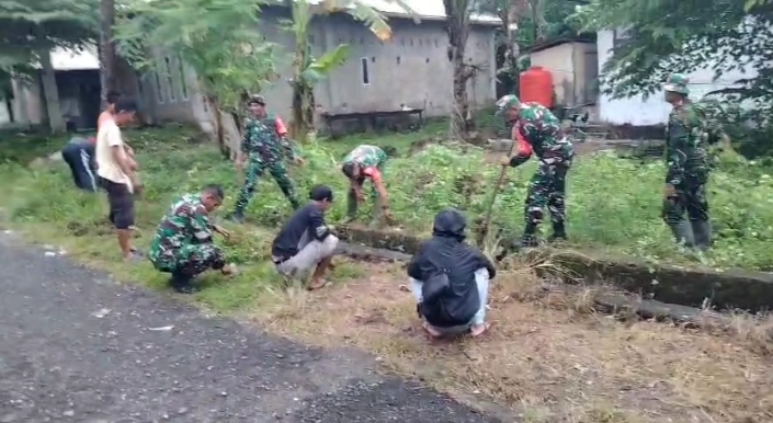 Ia menambahkan bahwa selain membersihkan tumpukan sampah, kegiatan juga mencakup pemangkasan rumput liar di sekitar bahu jalan dan selokan agar tidak menghambat aliran air. Tidak hanya personel TNI, masyarakat Kelurahan Peneki juga terlihat antusias berpartisipasi dengan membawa peralatan kerja seperti cangkul, sabit, dan gerobak sampah, sebagai bentuk dukungan terhadap upaya menjaga kebersihan lingkungan.