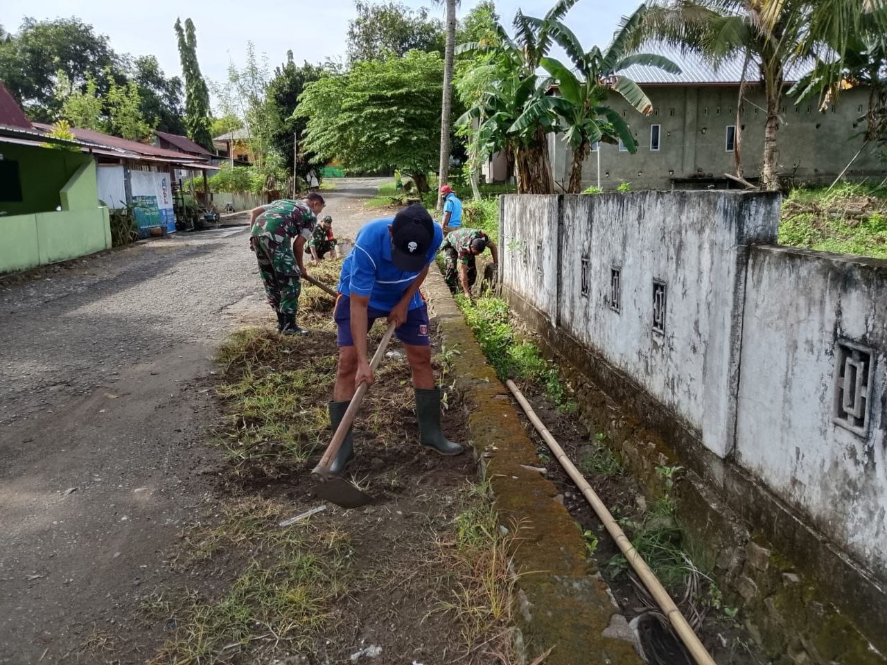 Kegiatan tersebut melibatkan personel Koramil, pemerintah kelurahan, tokoh masyarakat, serta warga sekitar yang ikut ambil bagian. Suasana kebersamaan terlihat jelas ketika seluruh peserta bekerja saling membantu mencabut rumput liar, mengangkut sampah, dan merapikan area sepanjang saluran air.