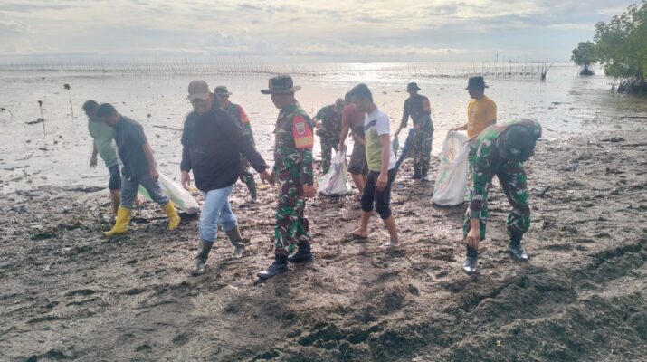 Koramil 1406-10/Pitumpanua Gelar Karya Bakti Bersihkan Pantai Siwa dari Sampah Laut