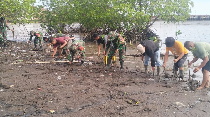 Wajo, Selasa (26/08/2025) — Koramil 1406-10/Pitumpanua yang dipimpin oleh Serka Saharuddin melaksanakan kegiatan Karya Bhakti penanaman mangrove bersama masyarakat di Kelurahan Siwa, Kecamatan Pitumpanua, Kabupaten Wajo.