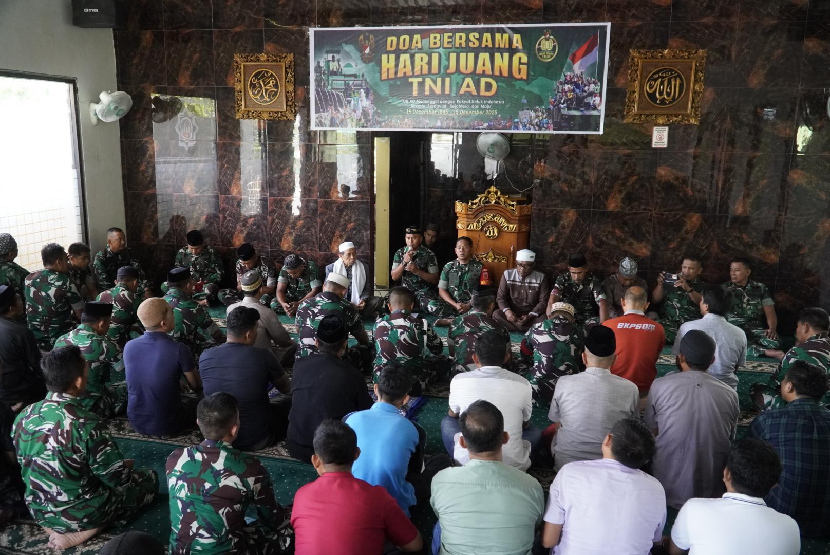 WAJO – Dalam rangka memperingati Hari Juang Ke-80 TNI Angkatan Darat, Kodim 1406/Wajo melaksanakan doa bersama yang berlangsung khidmat di Masjid Al-Ikhlas Makodim, Jalan Kejaksaan No. 55, Kelurahan Bulupabbulu, Kecamatan Tempe, Kabupaten Wajo, Jumat 12 Desember 2025.