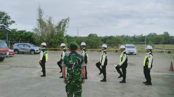 Wajo – Babinsa Koramil 1406-05/Majauleng, Serka Yohanis Langgi, memberikan pelatihan Peraturan Baris-Berbaris (PBB) kepada para petugas keamanan di SKK Migas, Kecamatan Gilireng, Kabupaten Wajo, pada Jumat (28/02/2025). Kegiatan ini bertujuan meningkatkan kedisiplinan dan profesionalisme para security dalam menjalankan tugas sehari-hari.